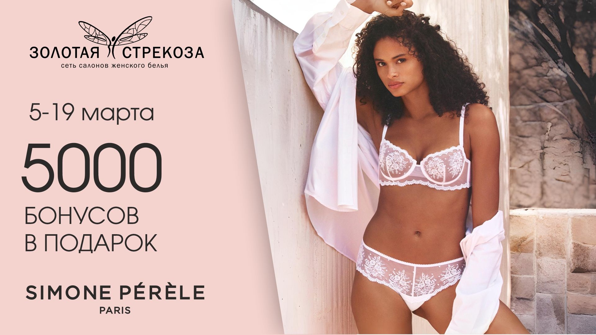 С 5 по 19 марта дарим 5 000 бонусов на покупку комплекта белья или двух бюстгальтеров Simone Perele!